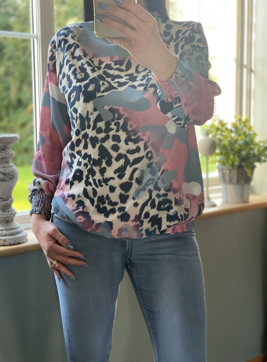 Made in Italy Patterend Navy and Pink High Neck Blouse